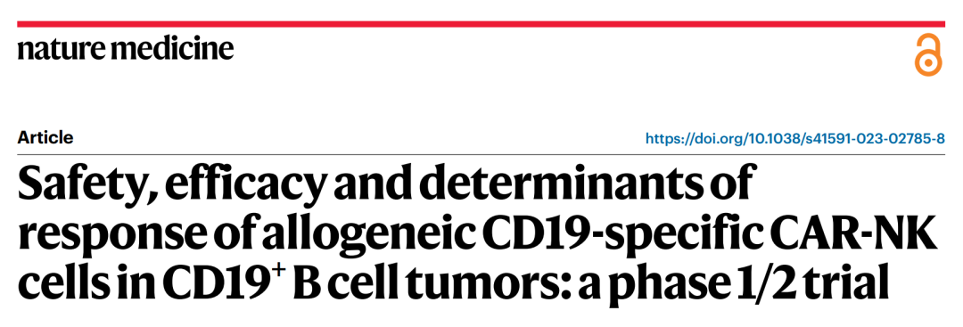 On January 18, 2024, researchers from the University of Texas MD Anderson Cancer Center published a research paper titled "Safety, efficacy and determinants of response of allogeneic CD19-specific CAR-NK cells in CD19+ B cell tumors: a phase 1/2 trial" in Nature Medicine . A phase 1/2 trial of umbilical cord blood-derived NK cells expressing anti-CD19 chimeric antigen receptor and interleukin-15 (CAR19/IL-15) was conducted in 37 patients with CD19+ B cell malignancies.
