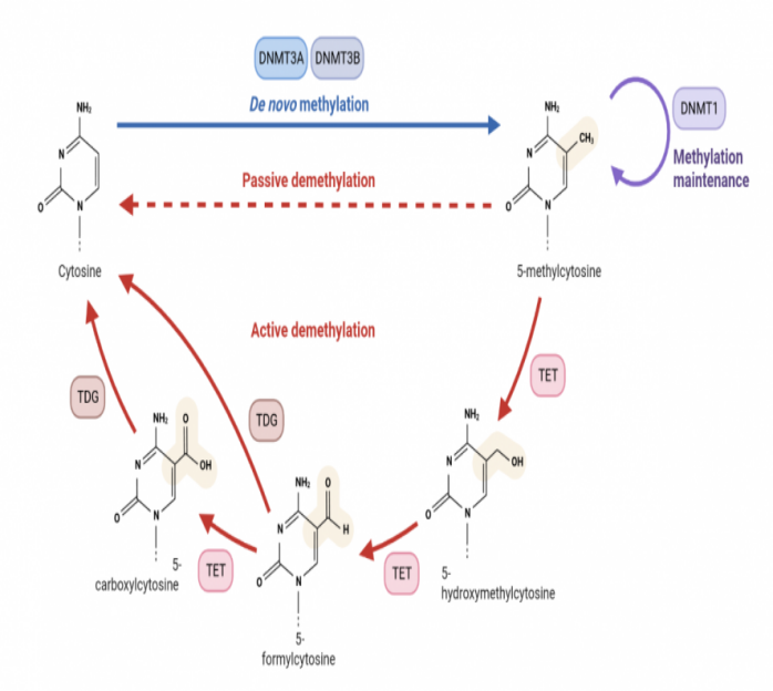 Figure 1 Schematic diagram of DNA methylation and demethylation (photo by biorender)