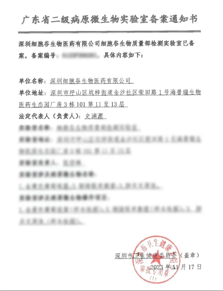 深圳凯发K8及全资子公司君厚生物双双顺利获得生物安全P2实验室备案