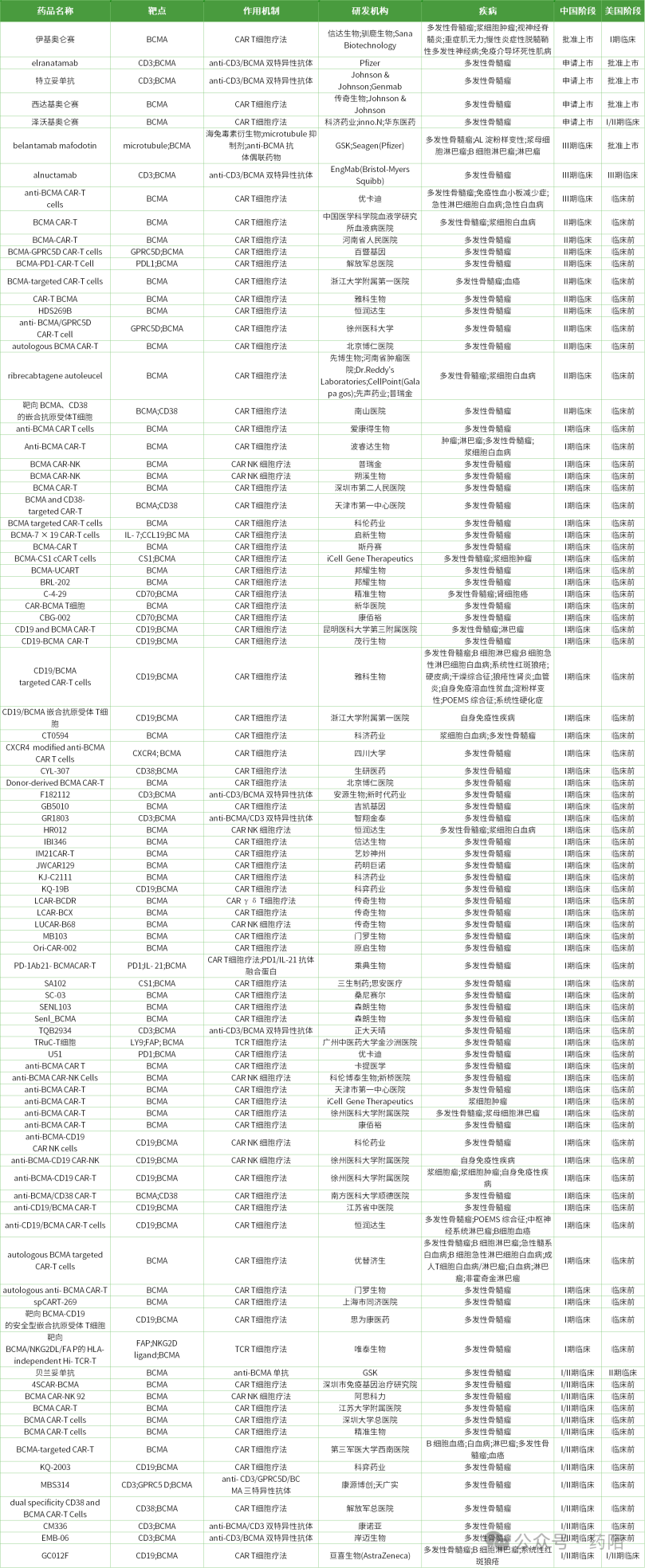 图5:靶向BCMA的产品进展汇总(来源:药陌)