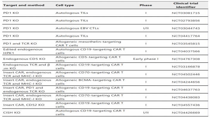 Table 1 Ongoing clinical trials of immunotherapies designed using CRISPR technology to treat human cancer