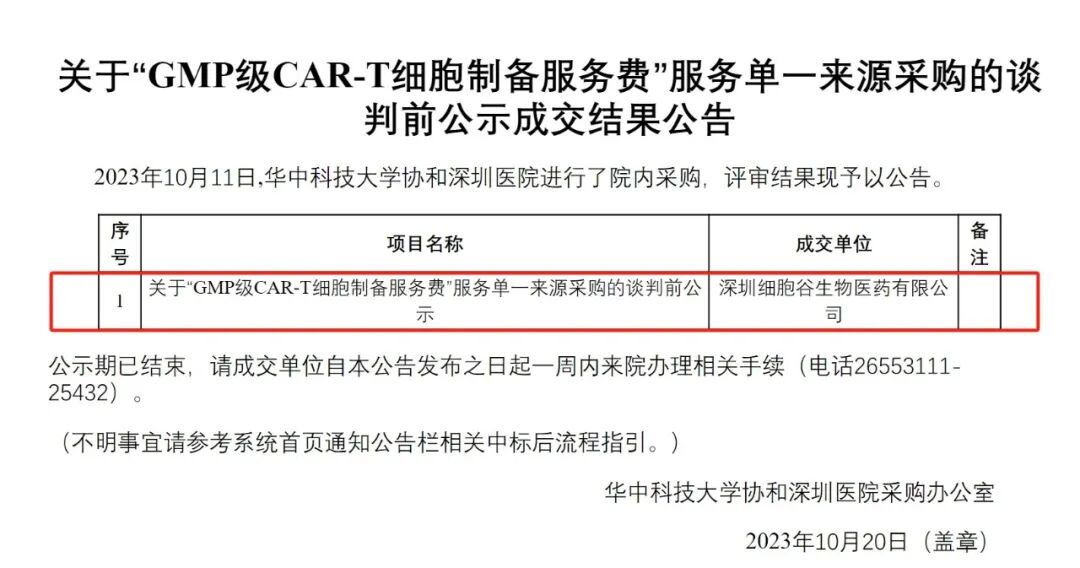 深圳凯发K8中标华中科技大学协和深圳医院“GMP级CAR-T细胞制备”采购项目
