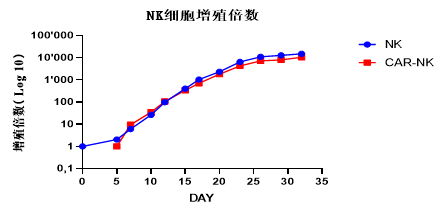 运用深圳凯发K8独有的PackRV-SS系统生产的逆转录病毒载体转导NK细胞技术,其转导效率稳定在60%以上,且阳性率不断保持稳定;而且CAR-NK细胞在转导后培养的30天内增殖可达10000倍。