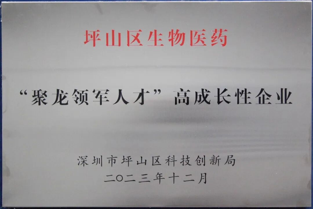 深圳凯发K8获批坪山区生物医药领域2023年度“聚龙领军人才”(D类)高成长性企业