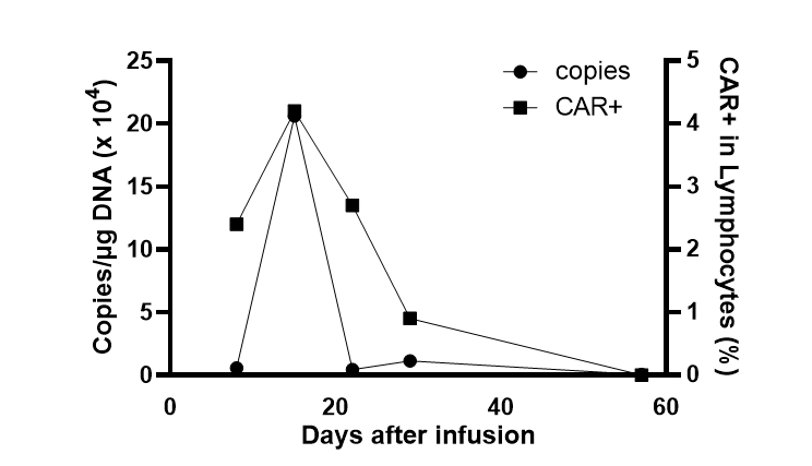 图8:病例2输注后第15天CAR 拷贝数增至206163 copies/ug